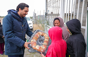 – El Presidente Municipal llevó Roscas de Reyes, cobijas y juguetes para las familias.