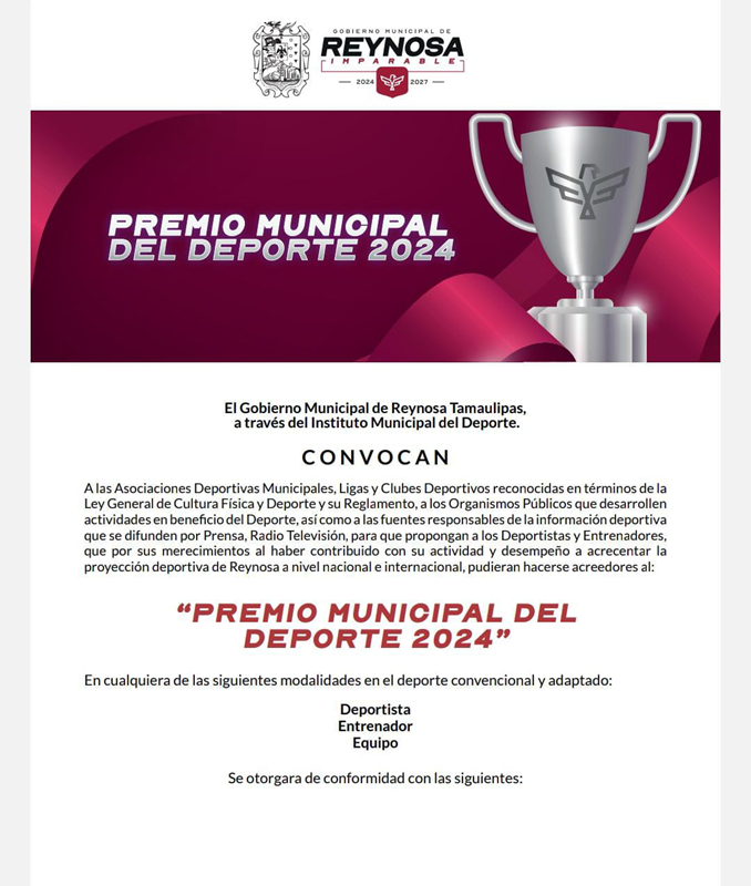 Lunes 02 Diciembre de 2024 El Presidente Municipal de Reynosa, Carlos Peña Ortiz, reconoció y felicitó a las selecciones deportivas...