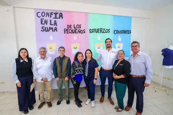 Una nueva aula educativa en la Casa Comunitaria Puerta Sur que ofrece educación afue inaugurada por el Alcalde Carlos Peña Ortiz, con la Presidenta de la Fundación «Construyendo y Creciendo», Roxana Fabris y el Director General de Promotora Hogares SM, Sabas Rodríguez González.