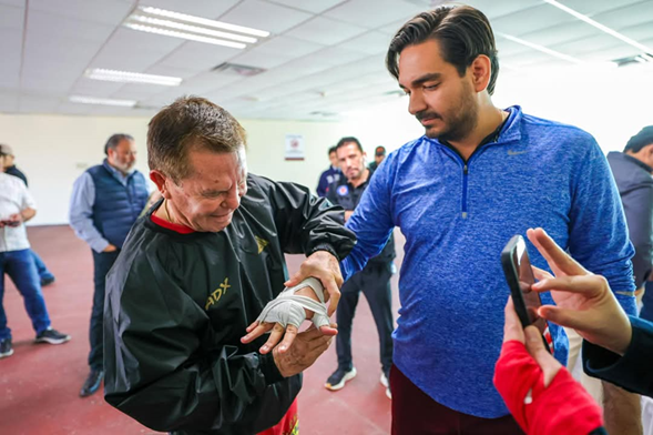 Durante su visita, Chávez González realizó un entrenamiento especial en el área de boxeo del Centro de Alto Rendimiento, compartiendo su experiencia y técnicas tanto con el Jefe del Gobierno Municipal como con asistentes a las instalaciones del IMD, que dirige Saúl Soto Castro.